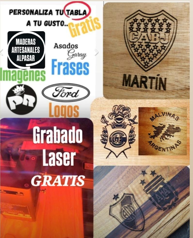 Lo que hace única a esta tabla es la posibilidad de personalizarla con un grabado láser gratuito. Podés incluir el escudo del logo, una fecha especial, un nombre, apodo o cualquier dedicatoria que quieras, haciendo de cada tabla un regalo inolvidable o un símbolo personal para tu propia cocina.